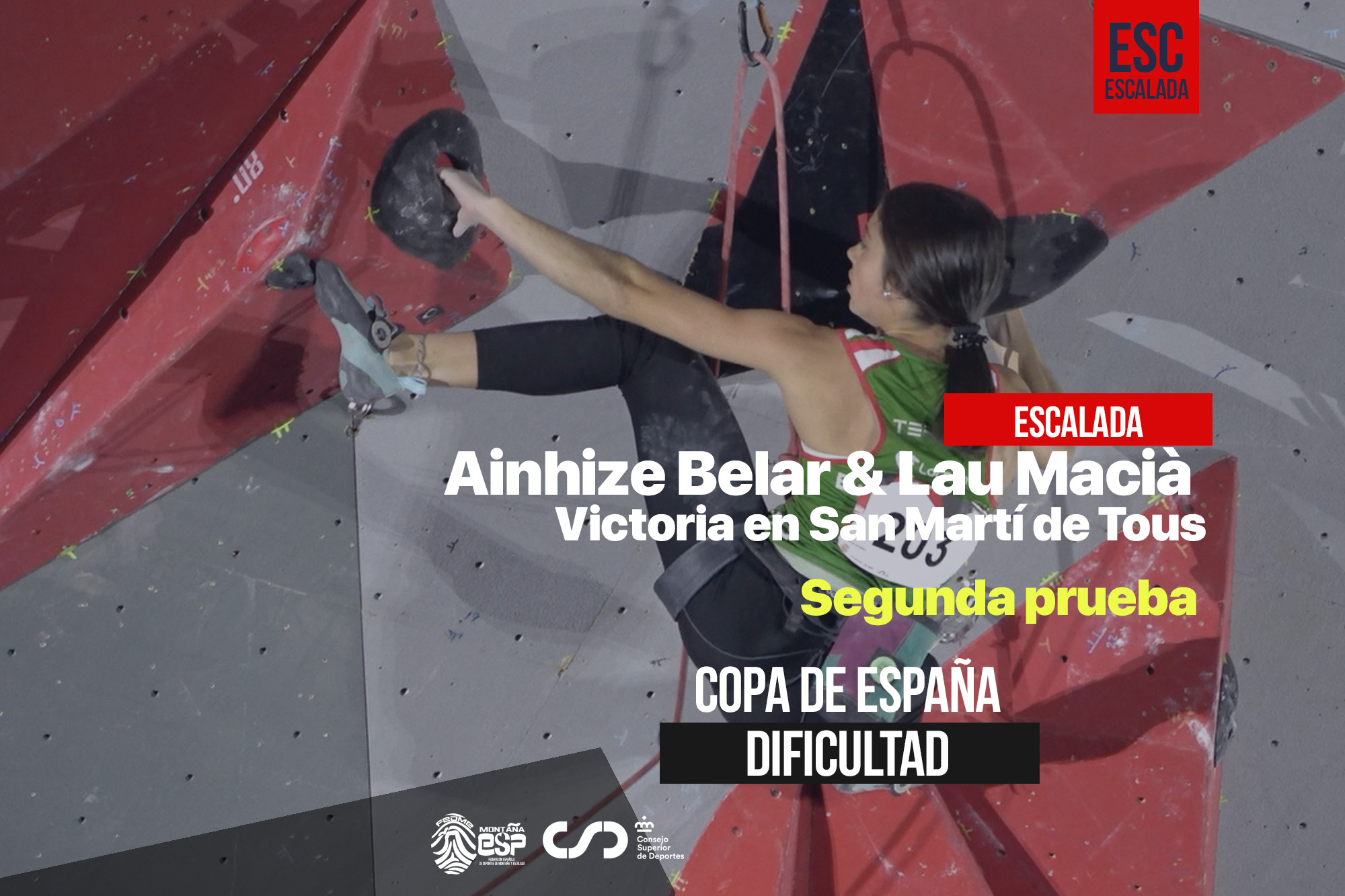 La escaladora vasca y el escalador catalán se imponen en la segunda cita de la Copa de España de Dificultad tras un intenso fin de semana de competición que contó con más de dos centenares de participantes.