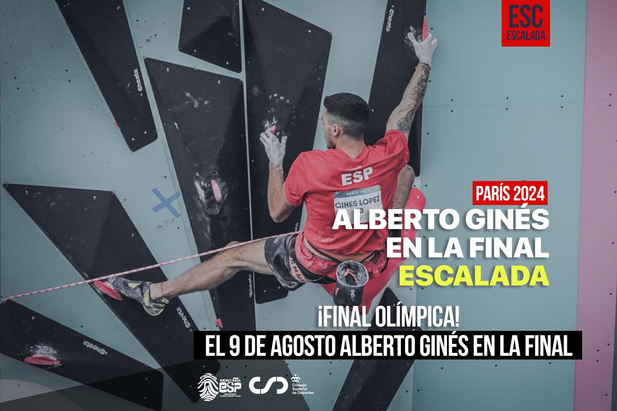 Alberto Ginés, actual campeón olímpico en Tokio 2020, consigue meterse en la Final tras remontar su decimocuarta posición en la Semifinal de Bloque. El español ha conseguido la mejor puntuación de los 19 escaladores, con 72 puntos. Alberto buscará su medalla el día 9 de agosto en la Final.