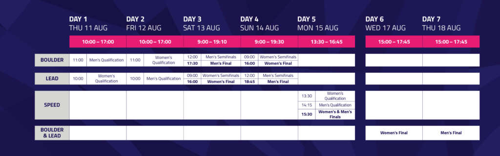 En Múnich participarán los 300 mejores escaladores y escaladoras del continente. Una competición que repartirá 24 medallas en cuatro modalidades: bloque, dificultad, velocidad y combinada. Será el mayor acontecimiento deportivo en Alemania desde los Juegos Olímpicos de Verano de 1972 y reutilizará muchas de las sedes de aquellos Juegos.