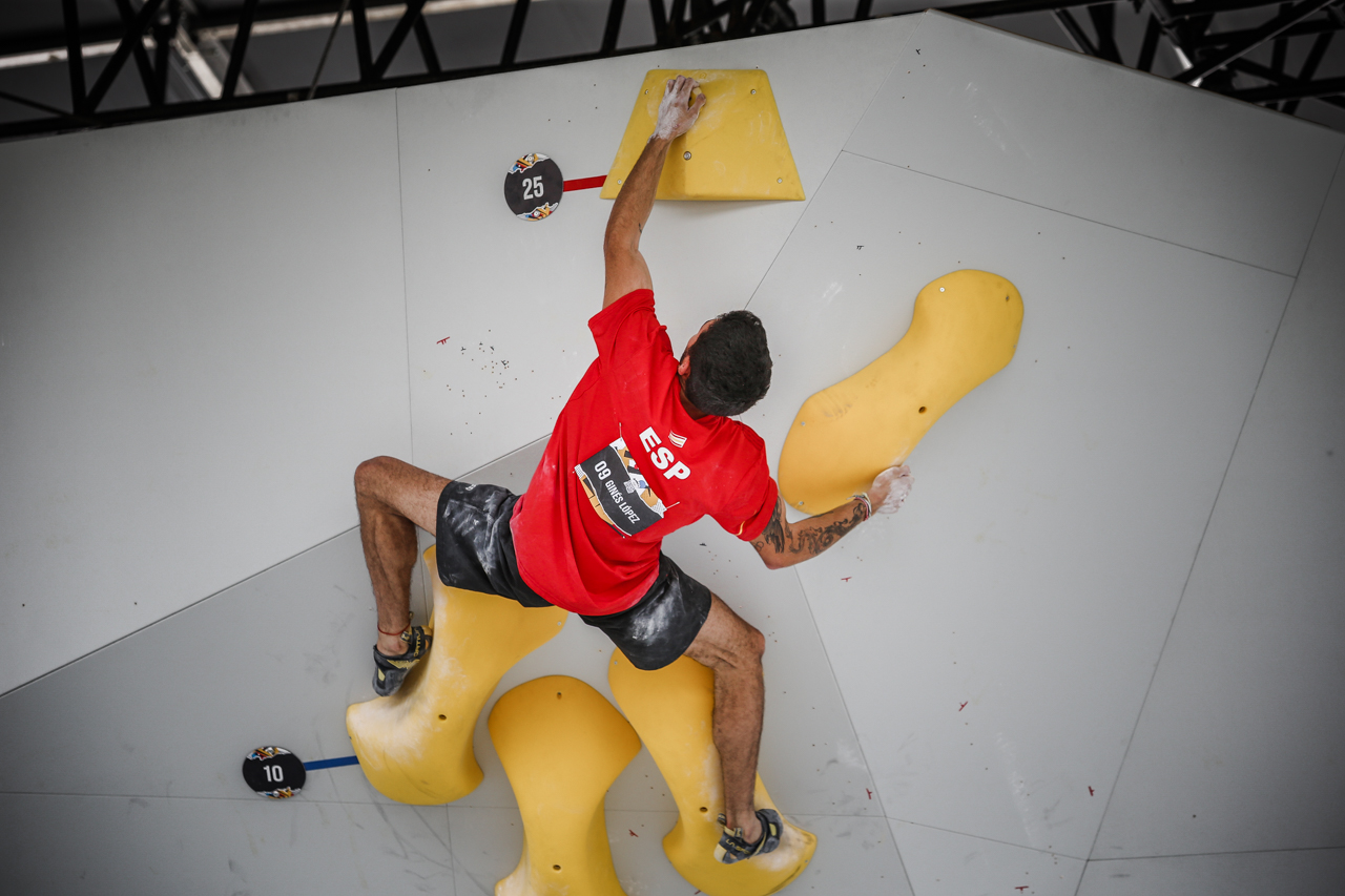 Arrancamos las Series de Clasificación Olímpica con Alberto Ginés en lo alto de la tabla de la clasificación, en una ronda clasificatoria que arrancaba con dos primeros bloques que no resolvía el campeón olímpico de Tokio 2020. Alberto Ginés comenzaba la jornada con una placa y una coordinación que no resolvía para sumar dos tops seguidos en el tercer y cuarto bloque.