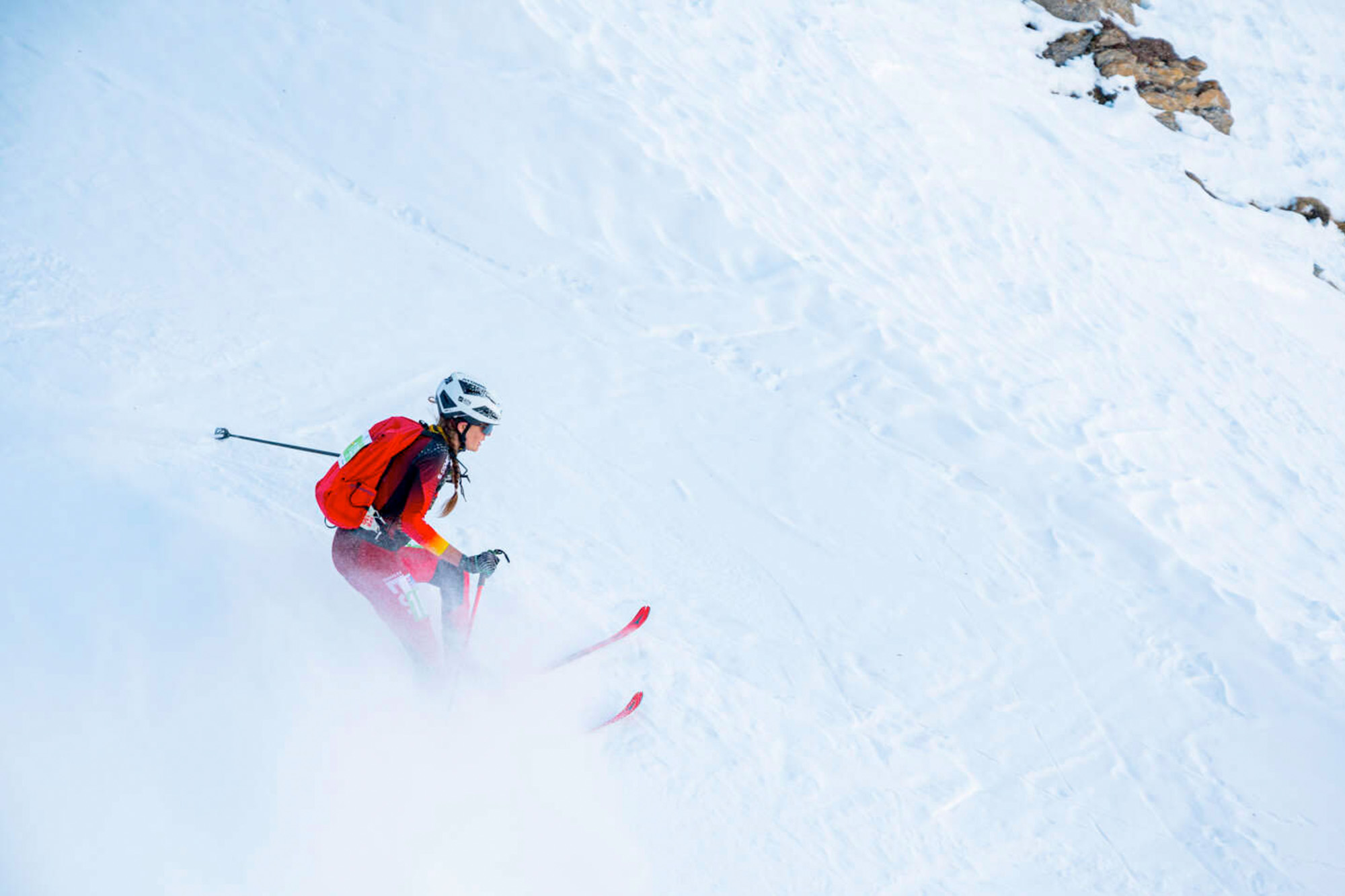 Minutos después de la salida masculina, la categoría femenina entraba en carrera con Axelle Gachet-Mollaret (1:27:24,04), la esquiadora de montaña más dominante de los últimos años, tomaba desde el principio el dominio de la prueba.