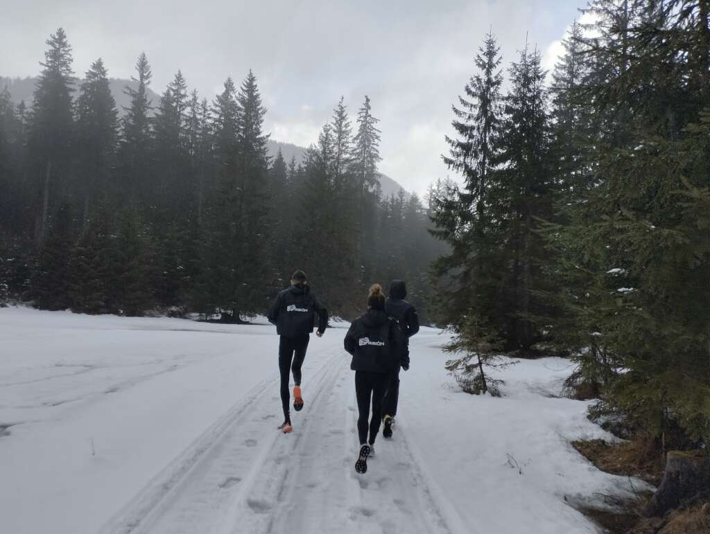 El Monte Mangart Winter Trail , de 15 km de recorrido y 515 m de desnivel positivo, una espectacular figura de ocho que toca los lagos turquesas de Fusine rodeados de pinares y dominados por montañas nevadas que alcanzan los 1.390 m de altitud .