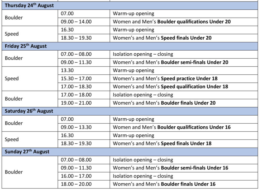 Hasta Corea llegaba el equipo española con una dura preparación a lo largo de estos meses de verano y culmina con el bronce que se colgó Geila Macià en categoría Youth B femenina. Muy competitiva estuvo también Júlia Benach (Youth B), que superó con solvencia las fases clasificatorias para finalizar dentro del Top10 mundial con una sexta plaza. Guillermo Peinado (Junior) alcanzaba las finales, tras unas duras series clasificatorias. La plata masculina se situó en el 18+. Una posición que el joven escalador español compartió con cinco escaladores más. Al final Peinado obtuvo la sexta plaza como consecuencia de las puntuaciones logradas en la fase clasificatoria. Finalmente, Iziar Martínez fue caía en semifinales, ocupando la 22ª posición tras una fase clasificatoria muy buena en la que se situaba séptima.
