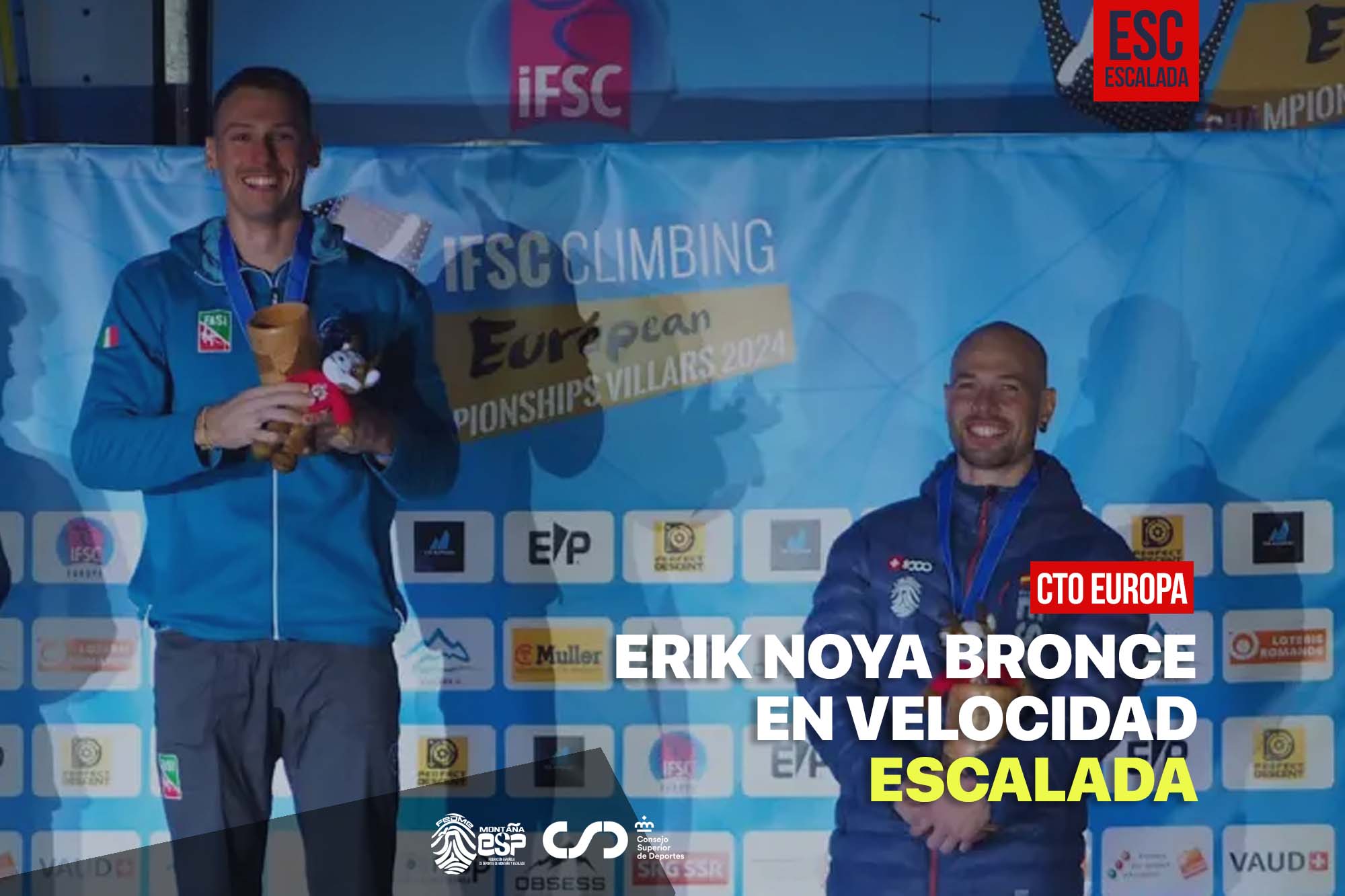 La localidad suiza de Villars acoge estos días el Campeonato del Europa. El día 29 de agosto tenía lugar la Final de velocidad, dónde Erik Noya conseguía colgarse la medalla de bronce. También destaca la participación de nuestras deportistas femeninas, Carla Martínez y Leire Ruíz, ambas consiguieron meterse en el Top 8 y disputar la final.