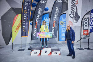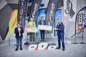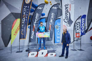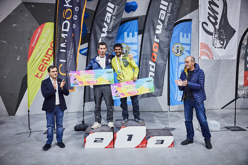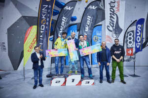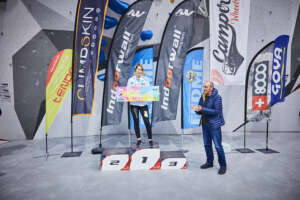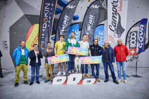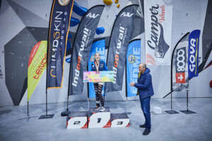 La categoría B2 sería la que abría las finales del campeonato para los participantes en paraescalada. Bajo un silencio absoluto en el rocódromo, el público ha seguido la voz del técnico asistente que iba que es quien les ha dictado todos los movimientos a los paraescaladores. Una prueba que vuelto a contar en esta ocasión con la colaboración de Víctor Esteller, seleccionador nacional de Paraescalada. El andaluz, Francisco Javier Aguilar se hacía con la primera plaza. La plata era para Guillermo Pelegrín y Raul Simón se subía al tercer cajón del podio.