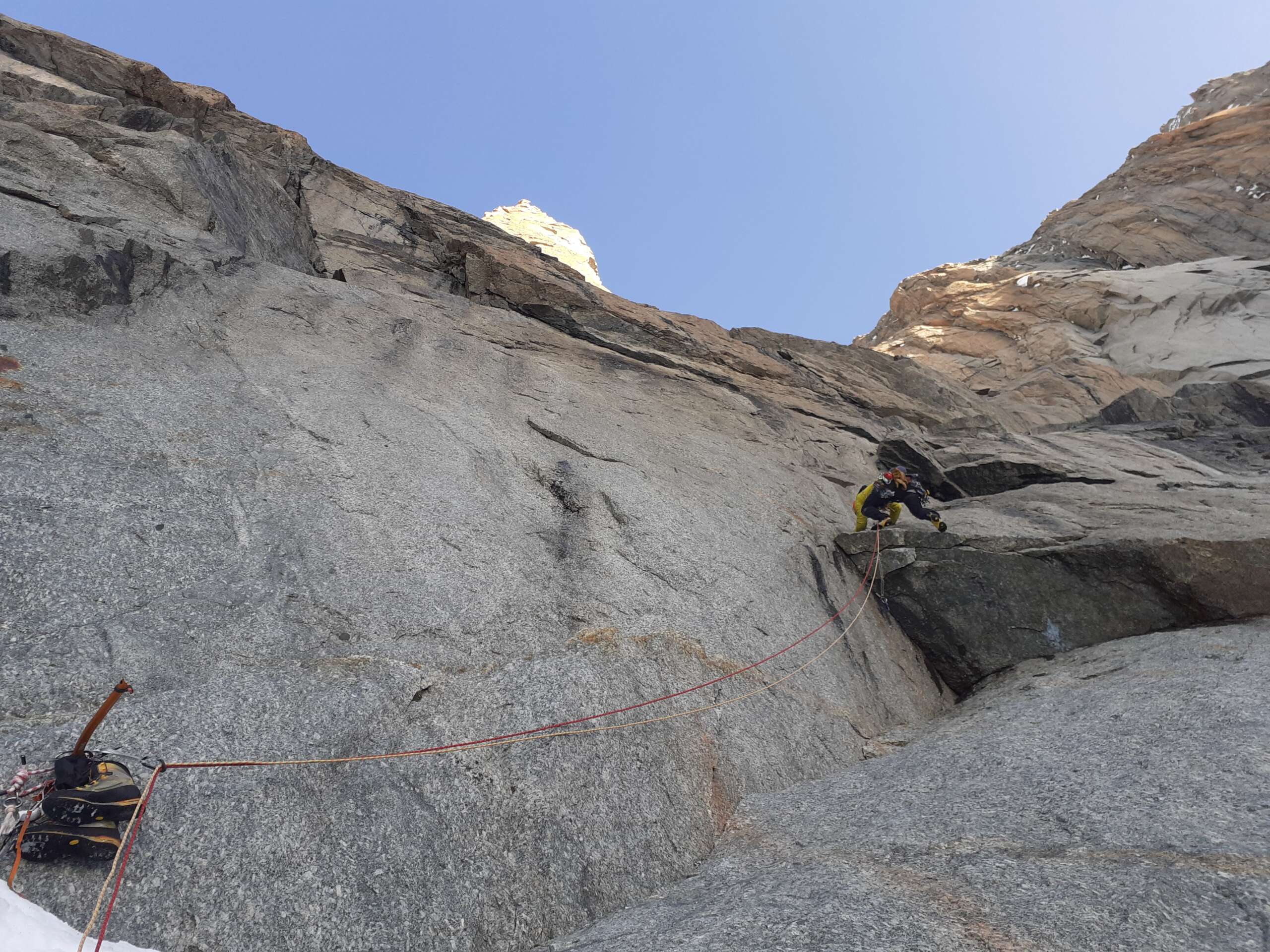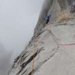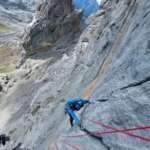 Una concentración que contaba con Kiko Cerdá, guía local y entusiasta aperturista de Picos. Una motivación para el equipo que le acompañaba en la que fue la primera repetición de la mítica vía “Entre el cielo y la tierra”. Una vía de escalada artificial, abierta en 1995 por Fernando Ruiz y Felipe Artiguez que no contaba hasta la fecha con repetición. Salvo un largo, la vía quedó liberada y en ella el Equipo Español de Alpinismo encontró un motivante objetivo deportivo.