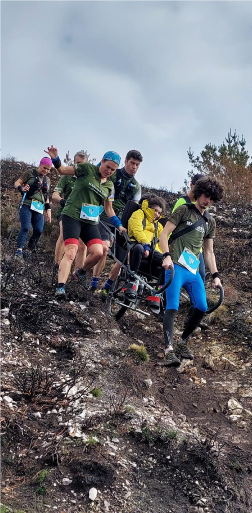 Desde el 2015 hacemos carreras por montaña en la familia, pero es a partir del 2019 cuando lo hacemos con nuestra hija en joëlette. Hemos participado en varias carreras, así como realizado rutas con la joëlette por la montaña tanto en Galicia como en otras comunidades como Asturias o Cantabria.