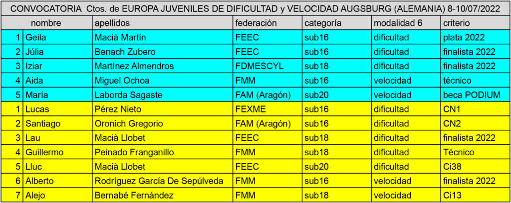 Se hace oficial la convocatoria para los campeonatos de Europa Juveniles de Dificultad y Velocidad Augsburg (Alemania) entre los días 8 y10 de julio.