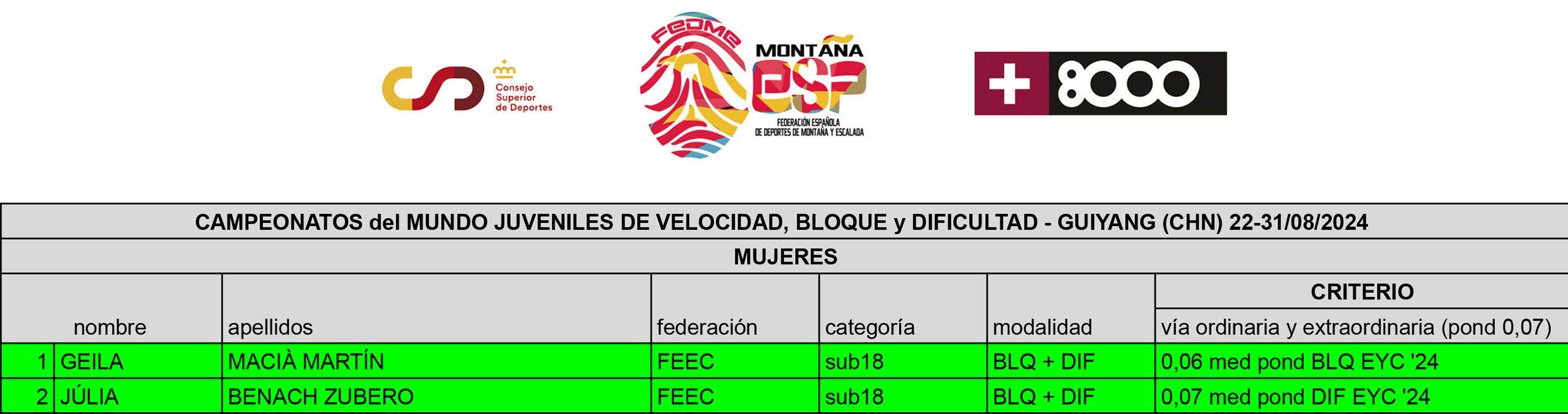 Convocatoria Campeonatos del Mundo Juveniles de VELOCIDAD, BLOQUE y DIFICULTAD – GUIYANG (CHN)