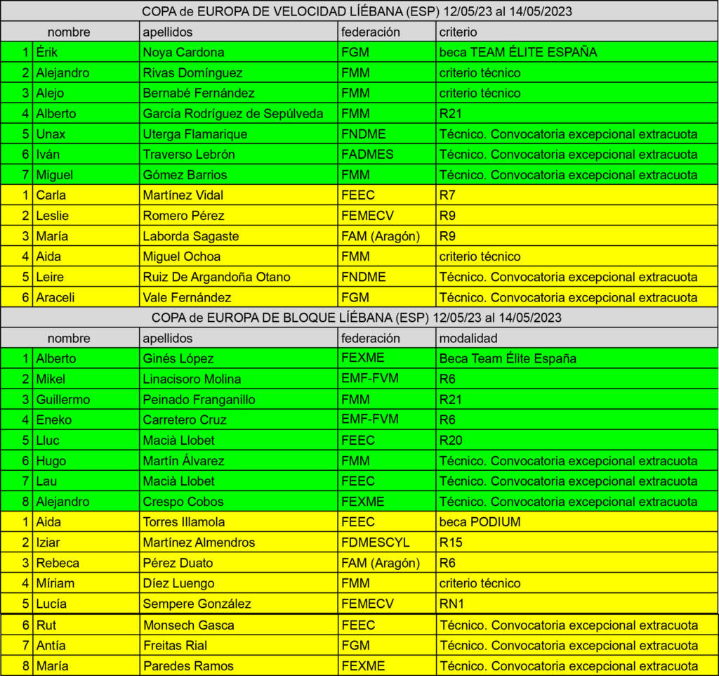 Selecciones españolas 2023 – Deportistas con criterio técnico