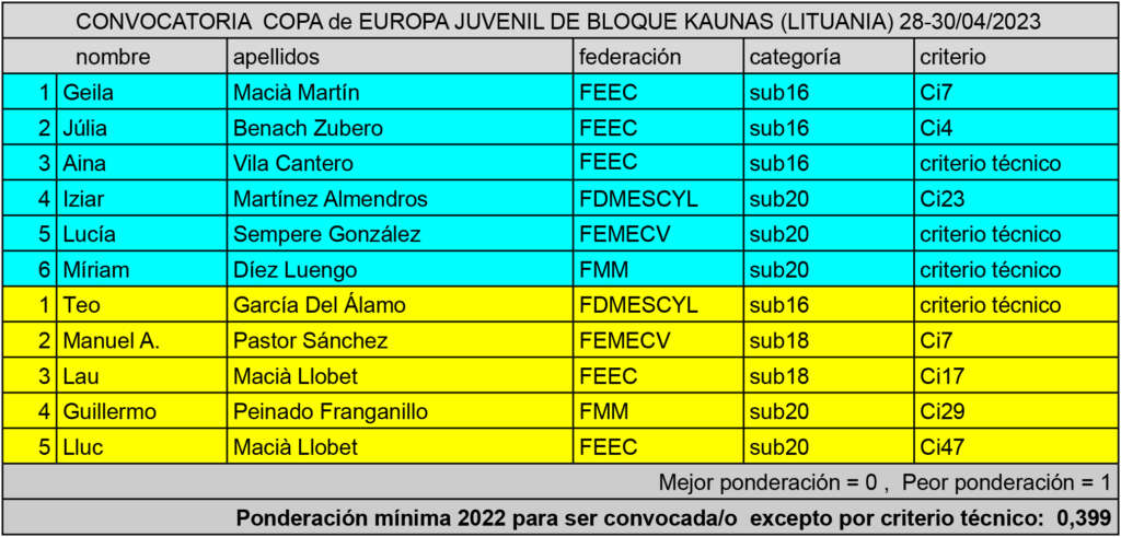 Se hace oficial la convocatoria para la COPA de EUROPA JUVENIL de BLOQUE, que tendrá lugar en la localidad Lituana de Kaunas entre los días 28 y 30 de abril de 2023.