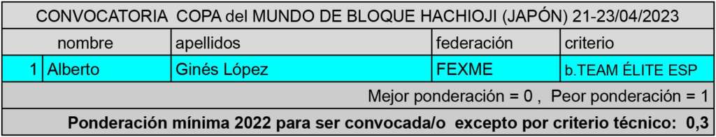 Se hace oficial la convocatoria para la COPA del MUNDO de BLOQUE, que tendrá lugar en la localidad japonesa de HACHIOJI entre los días 21 y 23 de abril de 2023.