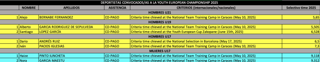 La selección española de escalada realiza la convocatoria de 7 deportistas, para competir en el Campeonato de Europa Juvenil de Velocidad.