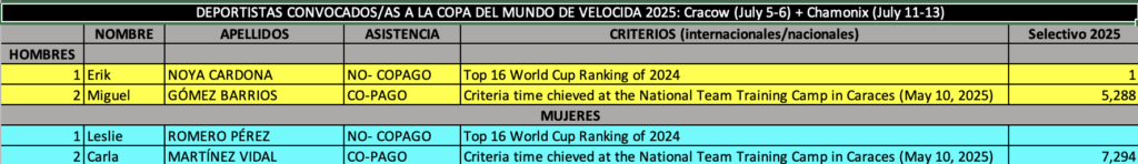 Deportistas convocados: