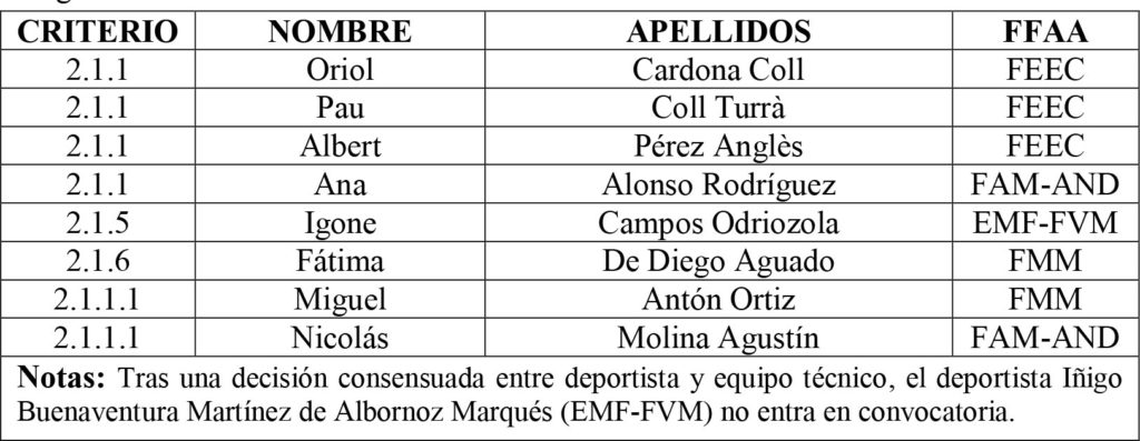 De acuerdo con los criterios publicados en Canal FEDME el pasado 11 de noviembre de 2021, se hace oficial el equipo seleccionado: