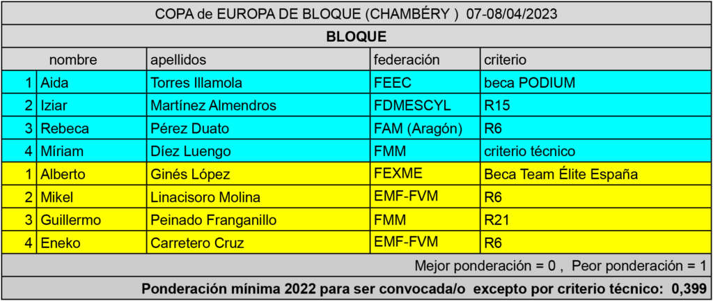 Se hace oficial la convocatoria para la COPA de EUROPA de BLOQUE, que tendrá lugar en la localidad francesa de Chambéry entre los días 7 y 8 de abril de 2023.