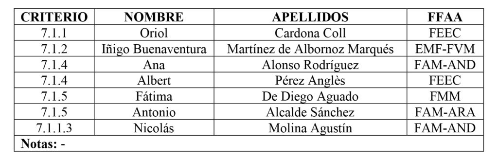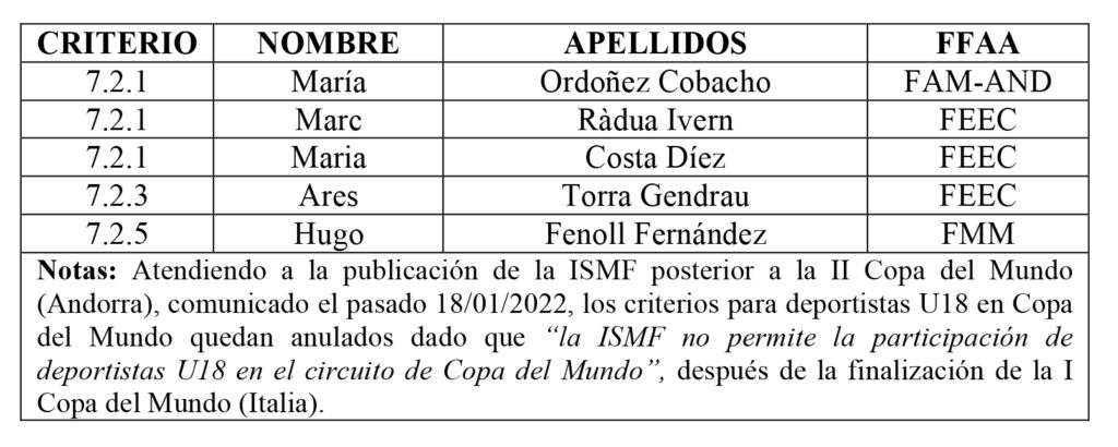 De acuerdo con los criterios publicados en Canal FEDME el pasado 11 de noviembre de 2021, se hace oficial el equipo seleccionado: