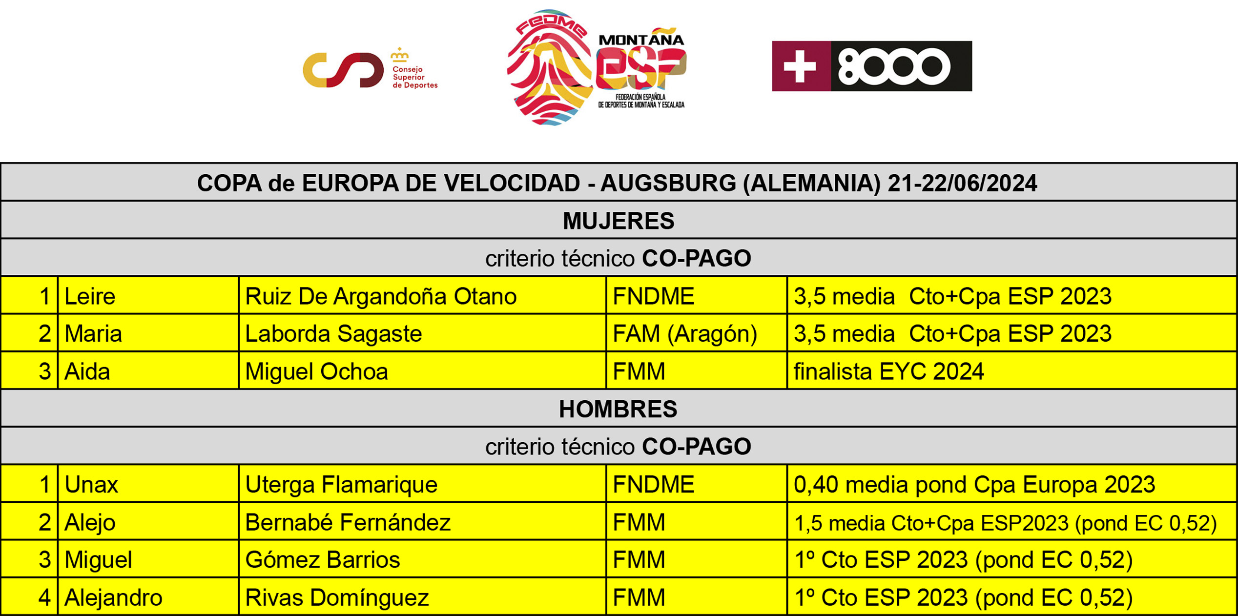 Relación de deportistas selccionados Escalada 2024