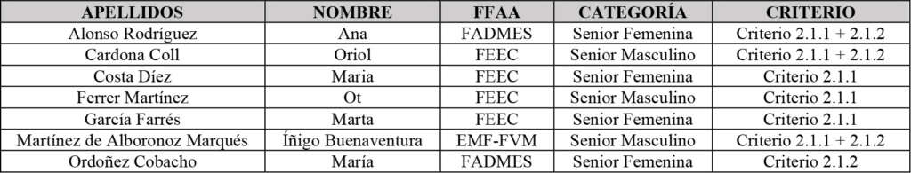 c) Criterios de inclusión de deportistas FEDME a la Lista Larga 2025-2026.