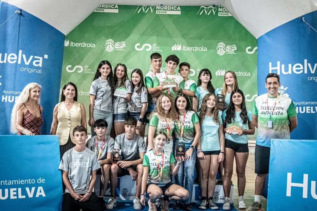 El evento, organizado por la Federación Española de Deportes de Montaña y Escalada (FEDME) y el C.D. Multideporte Huelva, se desarrolló bajo un ambiente vibrante, con público local y aficionados que no dejaron de animar a los participantes durante toda la jornada. Desde primera hora de la mañana, los equipos y jóvenes marchadores se concentraron para afrontar las pruebas con determinación y espíritu competitivo.