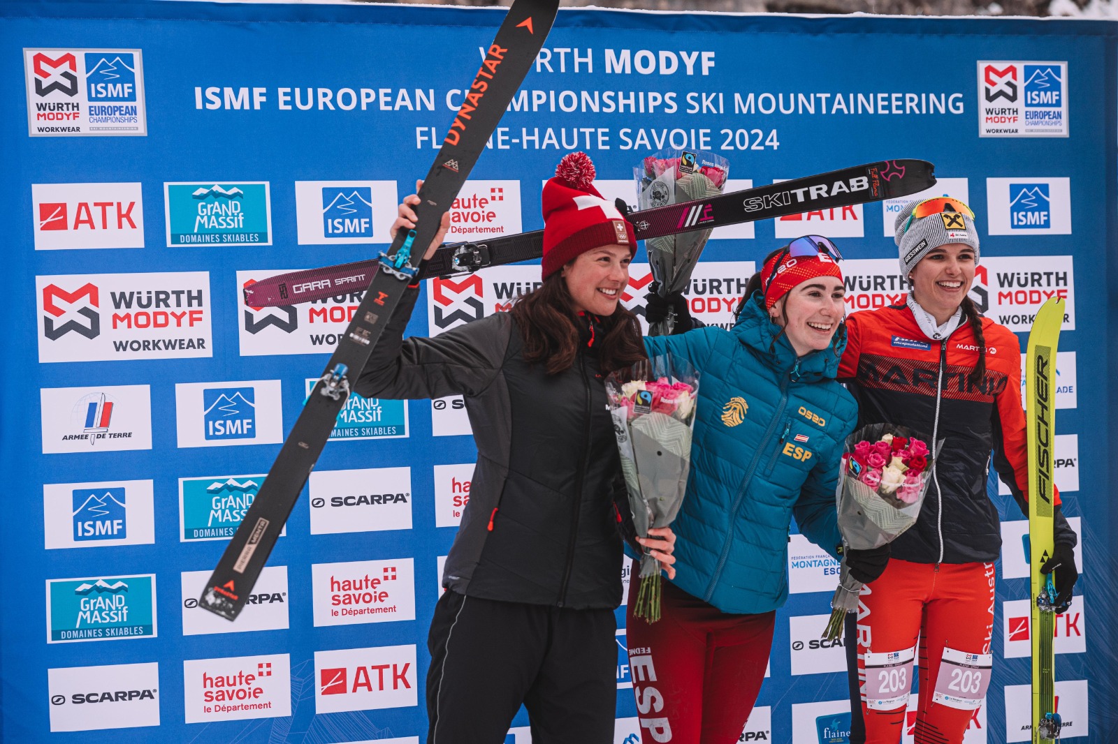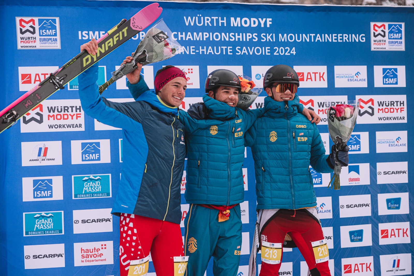 Oriol Cardona revalida el título europeo en la modalidad olímpica de sprint al lograr la medalla de oro el pasado 10 de enero, en el circuito de Flaine. Un título continental que suma el título mundial logrado la pasada temporada en Boí Taüll, situando al esquiador catalán como el mejor esquiador de montaña en la modalidad de sprint. Orio Cardona sumaba una medalla más, junto a su compañera de equipo, la andaluza Ana Alonso, en el relevo mixto disputado en la localidad de Chamonix el pasado 13 de enero, otorgando a Ana Alonso y a Oriol Cardona el titulo de campeones de Europa de relevo mixto, modalidad que será olímpica en Milan Cortina 2026. María Costa alcanzaba el podio en la categoría U23, proclamándose subcampeona de Europa en sprint, logrando la medalla de plata.