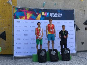 También Alberto Ginés se sube a lo mas alto del podio en Munich. Este escalador de la Youth A también habitual en los podios de Copa de Europa se ha impuesto hoy en la última prueba de Dificultad de la Copa. El extremeño ha regalado el único TOP de la final De la Youth A. Eneko Carretero consigue Cerrar el podio de Youth A tras una buena ronda de clasificación en la que pasaba en sexta posición. Aunque Carretero es un habitual en las finales de la Copa esta es la primera vez que consigue un tercer puesto.