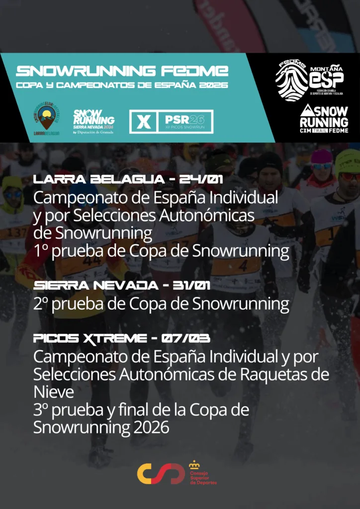 La modalidad de snowrunning sigue creciendo y en 2026 contará con un circuito muy potente, que reunirá a tres pruebas con una gran trayectoria dentro de la Federación Española de Deportes de Montaña y Escalada (FEDME). Todas ellas han sido competiciones oficiales en varias ediciones anteriores, consolidándose como referentes en el calendario invernal.