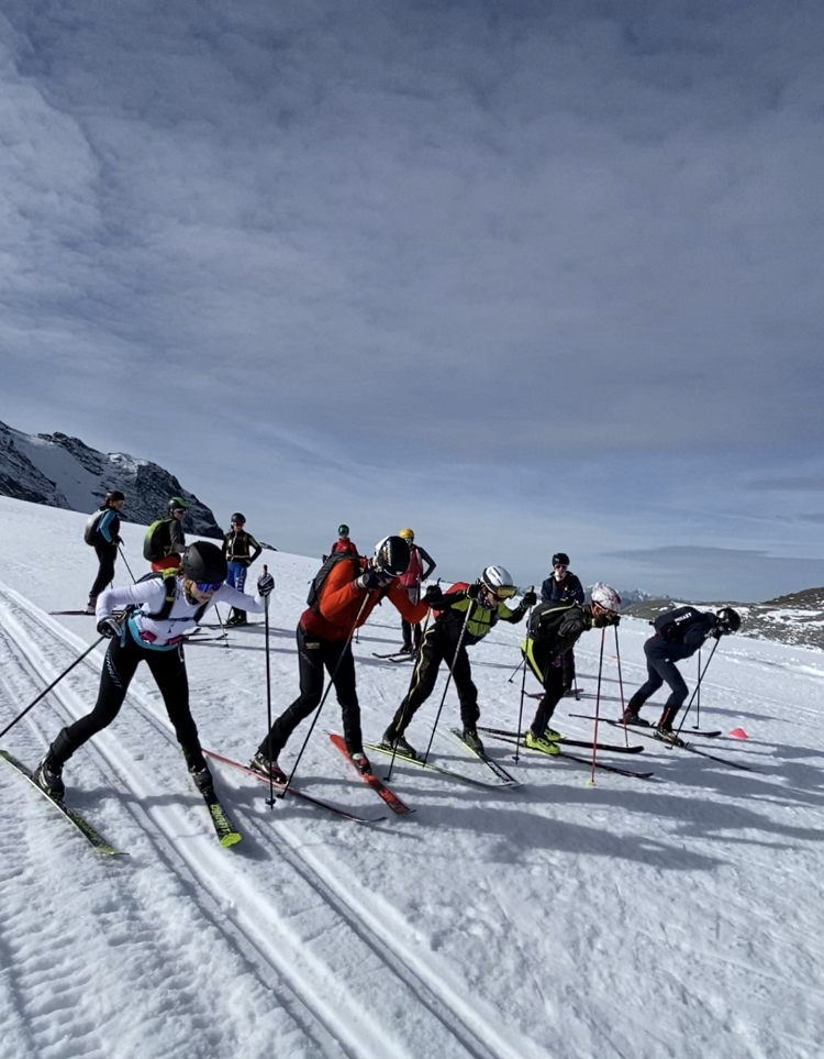 Primeras sesiones sobre la nieve de nuestra selección juvenil de esquí de montaña en las laderas italianas del Stelvio.