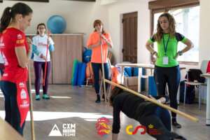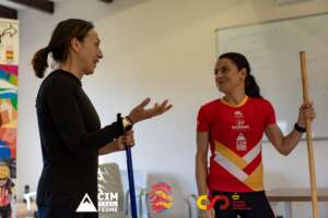 La jornada del domingo 18 comenzaba con una ponencia práctica acerca del entrenamiento de fuerza en mujeres y movilidad articular, impartido por Dori Ruano Sanchón, Graduada en CAFD, para continuar con una sesión práctica zona La Covatilla. Aprevechando una ruta de nivel medio-bajo se ofrecío esta sesión práctica acerca de la alternativa y uso de bastones en la montaña, impartida por Verónica Sánchez Romero (Corredora Internacional FEDME).