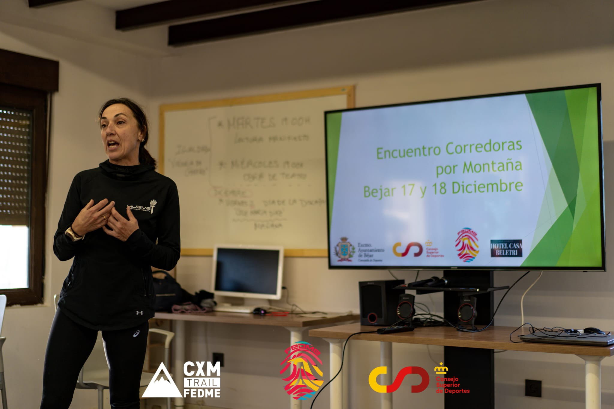 El encuentro arrancaba el sábado 17 de diciembre con una sesión de seguridad en la montaña y primeros auxilios. Impartido por Alberto Sánchez Hernández, Doctor en prevención de riesgos, para continuar con una sesión de nutrición deportiva en corredoras de montaña, impartido por Gema Gómez Sánchez, Nutricionista. La tarde continuaba con una sesión acerda de los conceptos básicos de fisioterapia en el deporte, impartida por Nerea Iglesias Rubio, Fisioterapeuta. La jornada del sábado se cerraba con un coloquio sobre las ayudas ergogénicas para deportistas, con la participación de Nerea Iglesias Rubio y Gema Gomez Sánchez.