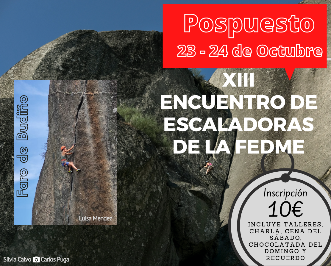 ⚠️ Debido a la adversa meteorología en Galicia del fin de semana la Federación Galega de Montañismo y la FEDME han determinado aplazar el Encuentro de Escaladoras para el fin de semana 23 y 24 octubre en el mismo lugar y con el mismo programa.