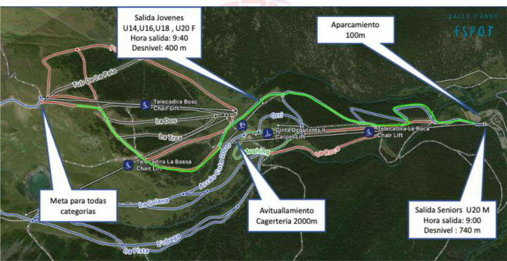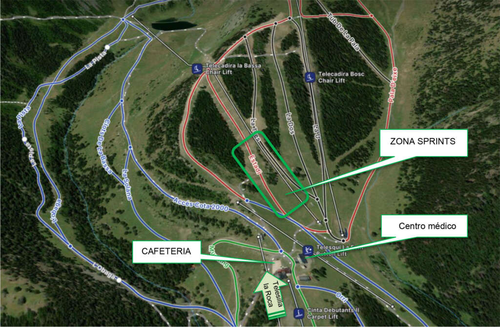 La modalidad de sprints tendrá lugar en un recorrido con un desnivel aproximado de 60 metros, cuyo recorrido concreto será presentado en la charla técnica del día previo a la prueba. La carrera se celebrará a unos 100 metros de la cafetería situada en la Pista Roja “Estadi”, en la cota 2000.