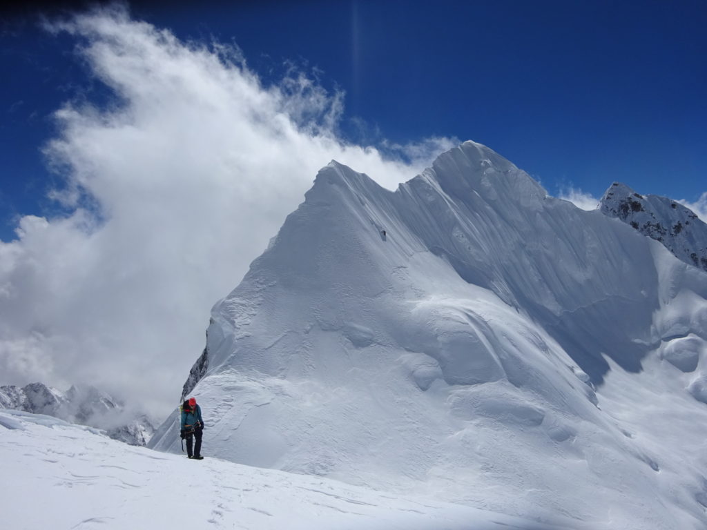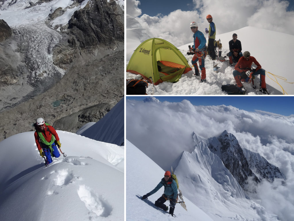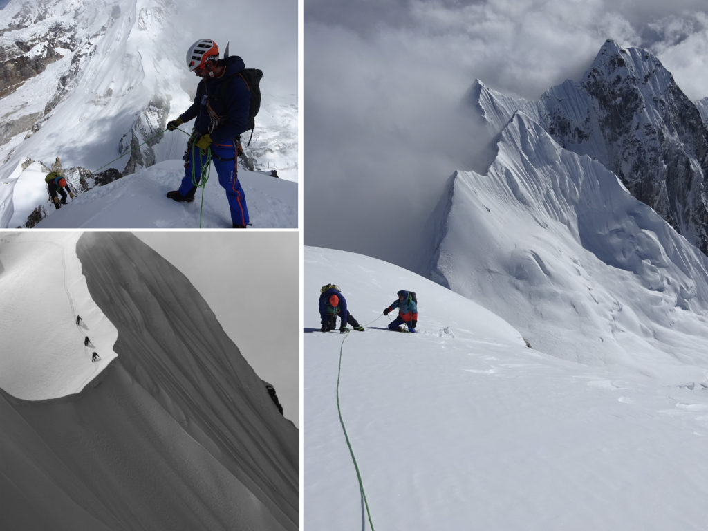 Los integrantes de la expedición se fijaban en un bonito cordal que sale del mismo collado de la arista oeste hacia el pico Urkimang (6.187m) y que está lleno de gendarmes y cimas secundarias.