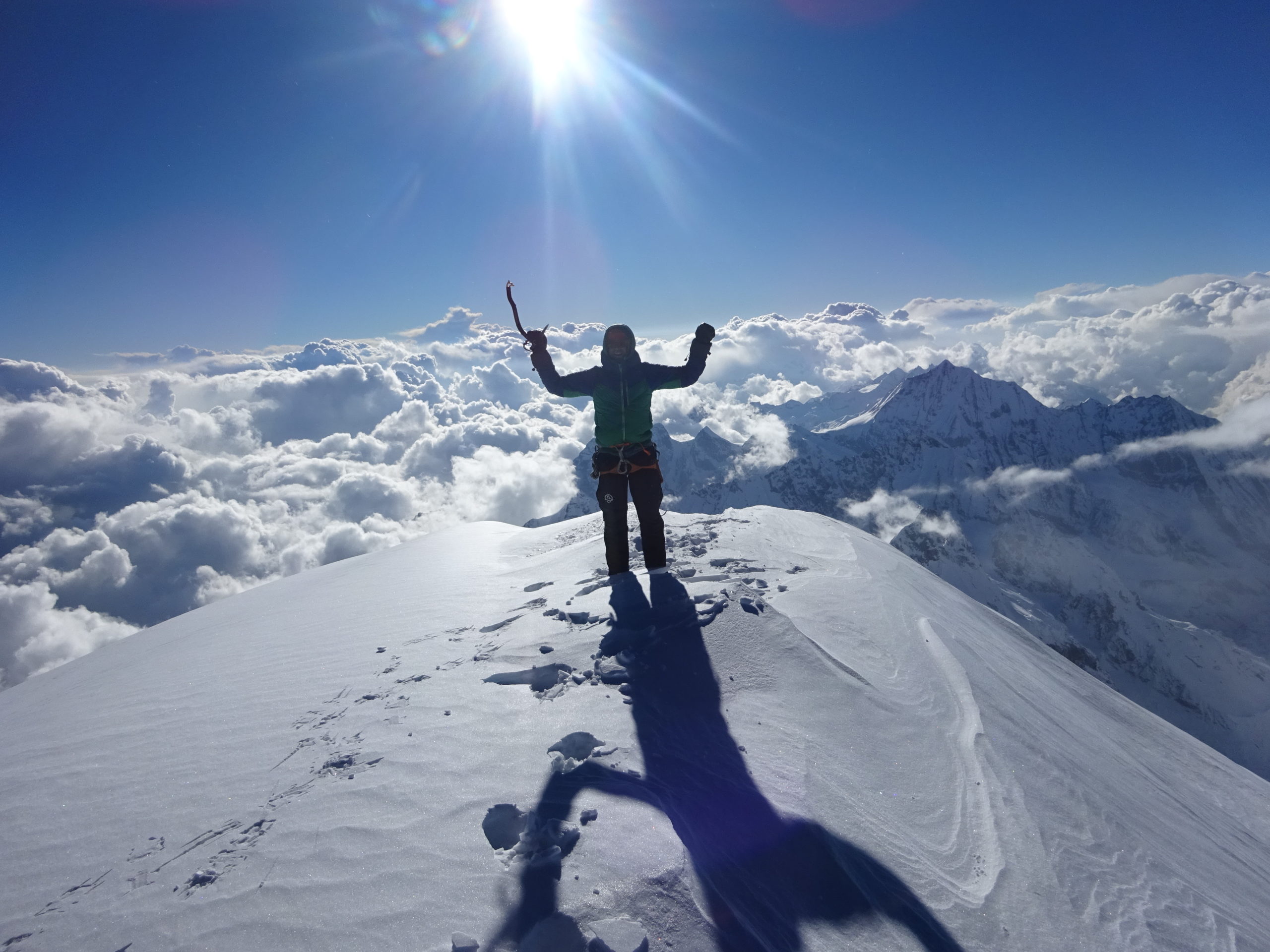 Dejan la tienda montada a unos 6.100 metros y continúan ese mismo día hasta la cumbre. La pared sur parece que goza de buenas condiciones y decidirán bajar también por ella más tarde. La arista oeste, el plan inicial de descenso, queda descartada ya que se ve muy cargada y mejor no tentar a la suerte.