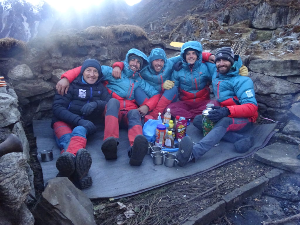 Nada más concluir la aclimatación entró un inusual periodo de mal tiempo que retenía al Equipo más de una semana. Cinco días consecutivos de lluvias en el campo base que dejaron casi metro y medio de nieve en el glaciar ponían a la expedición contra las cuerdas.