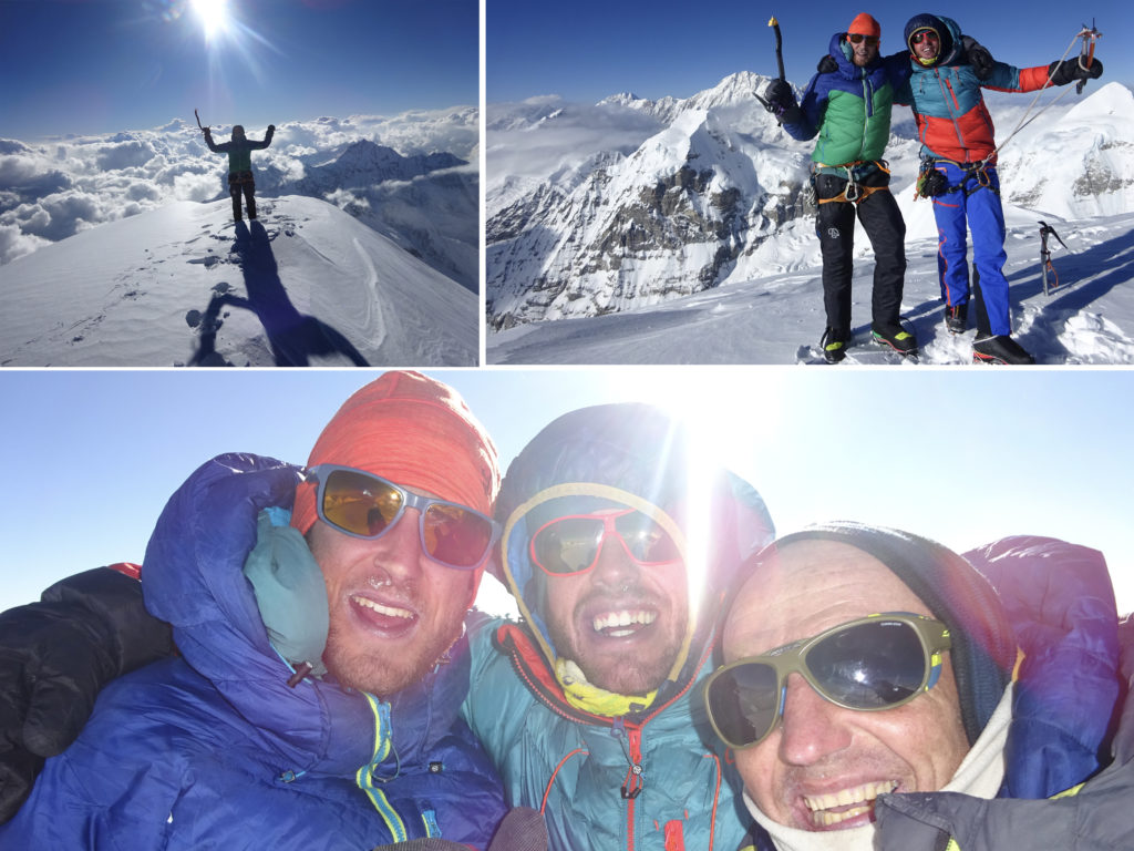 La cordada se marcaba las 15:00, oscurece a las 17:40, como hora tope para llegar a la cima. Finalmente hacían cumbre a las 16:00. El tiempo es frío, hace poco viento. La situación es magnífica. Toca disfrutar por unos instantes del objetivo logrado.