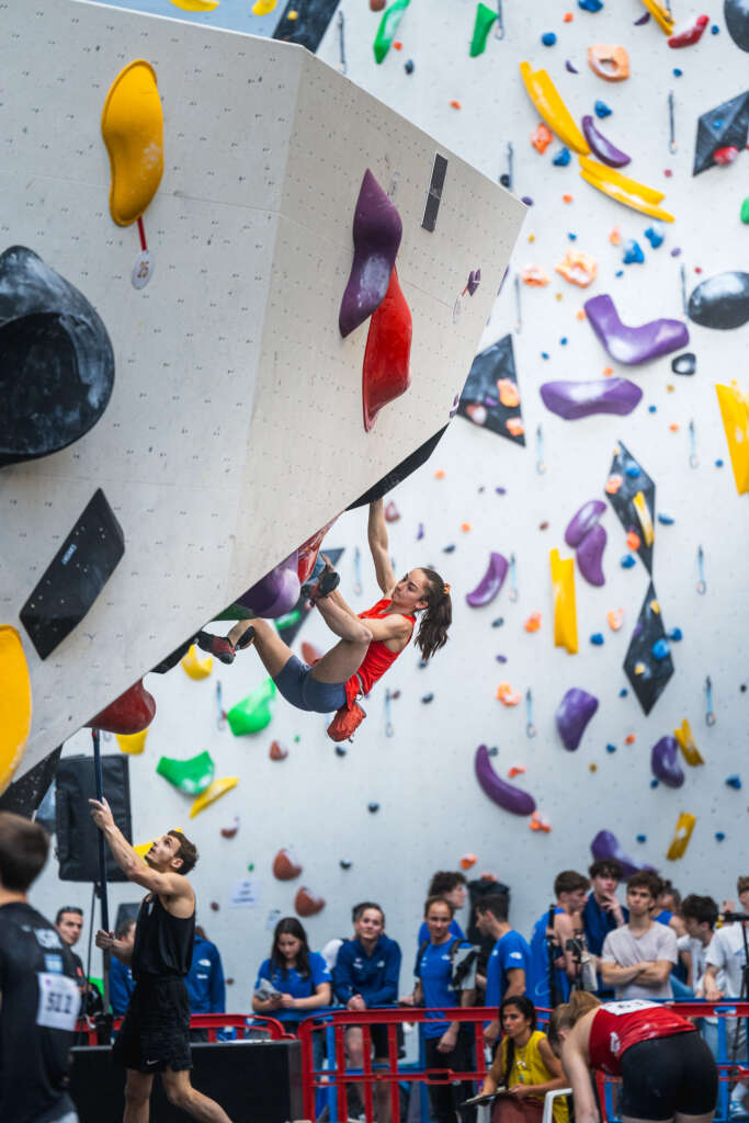 La gran protagonista del campeonato ha sido Geila Macià, que se ha proclamado campeona de Europa en categoría U19 tras una competición impecable. Segunda en la clasificatoria y tercera en semifinales, Macià reservó lo mejor para la final, donde sumó 98,6 puntos y se impuso con solvencia a las israelíes Tamar Cohen (83,6 puntos) y Alma Sapir Halevi (69,6 puntos). La joven catalana confirma así su posición entre las mejores escaladoras juveniles del continente.