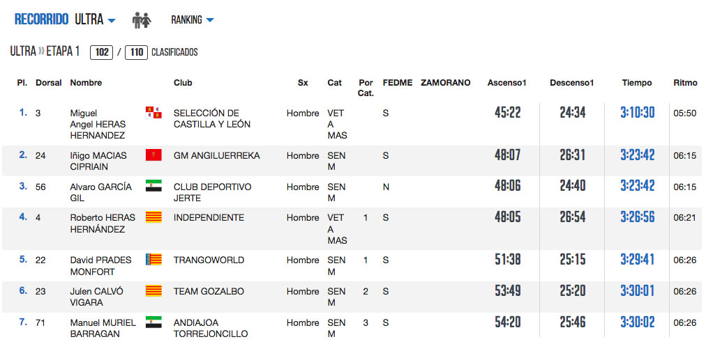 Con Merillas fuera de competición, el abanico a aspirantes para completar el podio se abría. Finalmente, fueron el navarro Íñigo Macías y el extremeño Álvaro García quienes se colgaron la plata y el bronce respectivamente, con segundos de diferencia entre ambos. Por su parte, Heras logró una renta de 12 sobre sus rivales que le adjudican un papel de favorito sin discusiones para le otorgan un favoritismo incuestionable para alzarse con esta sexta edición del Ibereólica Ultra Sanabria Caja Rural y el primer Campeonato de España por Etapas de la Federación de Deportes de Montaña y Escalada (FEDME), que acoge la cita sanabresa.