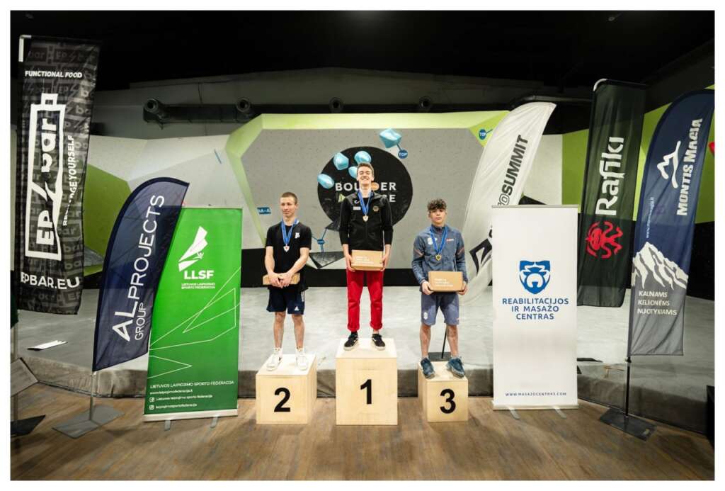 El podio de la categoría masculina se decidía por detalles. Guillermo Peinado luchaba ante Thorben Perry y Oren Prihed por las medallas. Tres tops le daban la victoria a Perry, mientras que la plata y el bronce se han decido por el menor número de intentos a tops. Con un intento menos, Prihed ha sido segundo por delante de Guillermo Peinado que se sube al tercer cajón en Lituania. Lluc Macià finalizaba en el puesto 20.