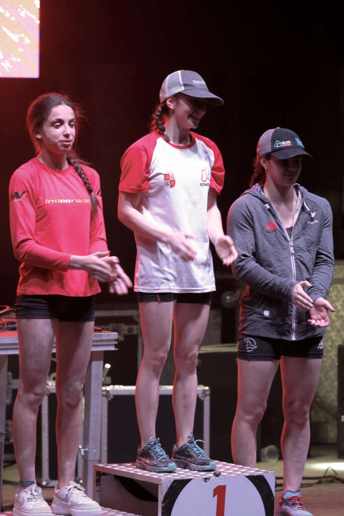 En la categoría femenina, la emoción llegaba tras superar el ecuador de la prueba, con la lucha por alcanzar el Top. Solo la escaladora vallisoletana, Iziar Martínez lograba alcanzar el punto más alto del trazado marcado por los equipadores, tras un emocionante lance que le llevó a lo más alto del podio. Una victoria, que le otorga a la escaladora su cuarto título nacional. El duelo por la medalla de oro nos dejó también con la emoción ver a Geila Macià (39+), que alcanzaba los volúmenes azules que conducían al TOP. El tercer puesto ha sido para, Julia Benach (36+) que caía dos movimientos por debajo de su compañera de selección. Completaron una final femenina, Ainhize Belar, Lucía Sempere, Paula Traverso, Emily Charlotte y Maddi Aguirre.