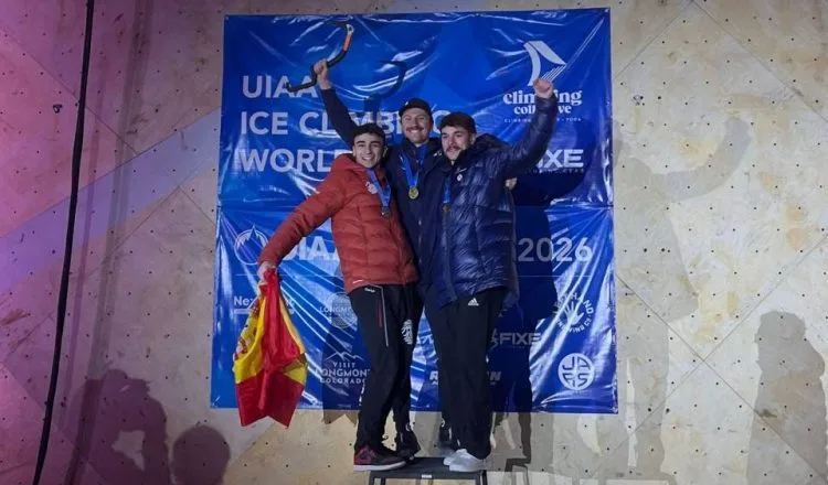 Jorge Veiga continua escribiendo líneas que quedarán ya para la historia. Un nuevo podio le permite aumentar su peso en la historia de la Copa del Mundo de Escalada en Hielo.