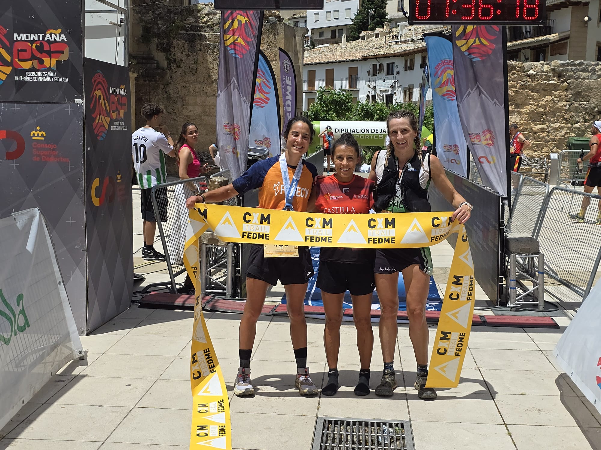 En la categoría femenina, la corredora de Almagro, mandó en cabeza de carrera desde el inicio de la prueba. Una prueba en la que el calor se convertía en un elemento importante en la gestión de la carrera de hoy “he intentado entrenar cuando salía de trabajar, hacia las seis de la tarde, que hacía 35 grados, pero han sido tres días. No ha dado tiempo a aclimatarse. Yo corro mejor con calor que con frío, pero sufro. El tipo de carrera de hoy, a mí me favorece mucho, porque aunque tiene grandes subidas, tiene muchas partes de correr que no son demasiado técnicas. He ido controlando. He hecho mi carrera, intentando desde el principio llegar primera y así ha sucedido. Muy contenta con lo conseguido. Enhorabuena a los voluntarios que se están achicharrando, lo pobres. Gracias a todos por la organización. Y otra vez, campeona de España.”