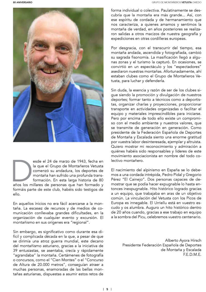 La FEDME, a través de su Presidente, Alberto Ayora, se une al 80 Aniversario Grupo de Montañeros Vetusta Oviedo.