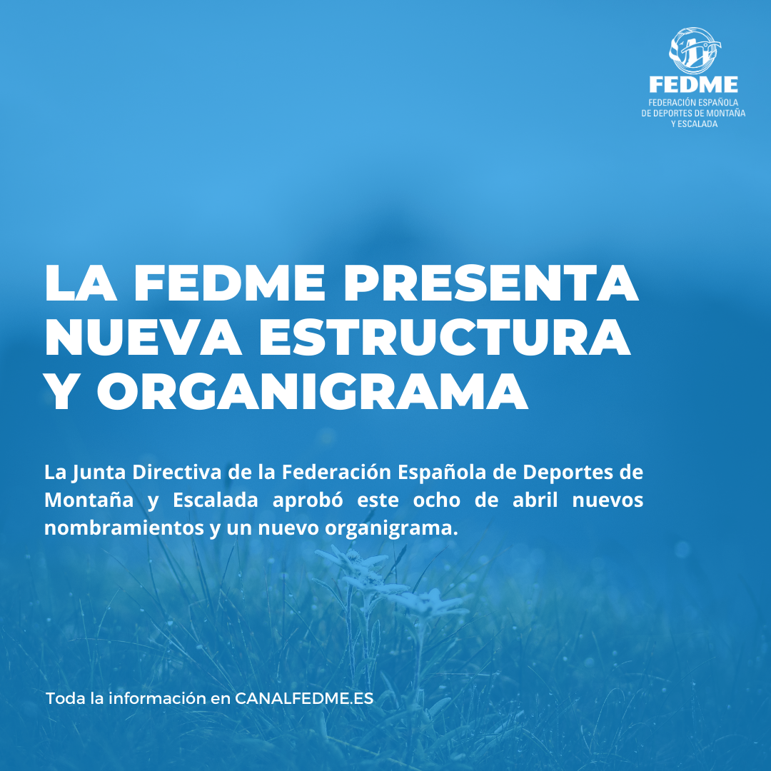 La Junta Directiva de la Federación Española de Deportes de Montaña y Escalada aprobó este ocho de abril nuevos nombramientos y un nuevo organigrama.