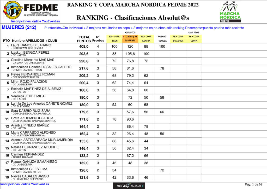 Ver aquí la Clasificación General de la Copa de España Iberdrola de Marcha Nórdica.