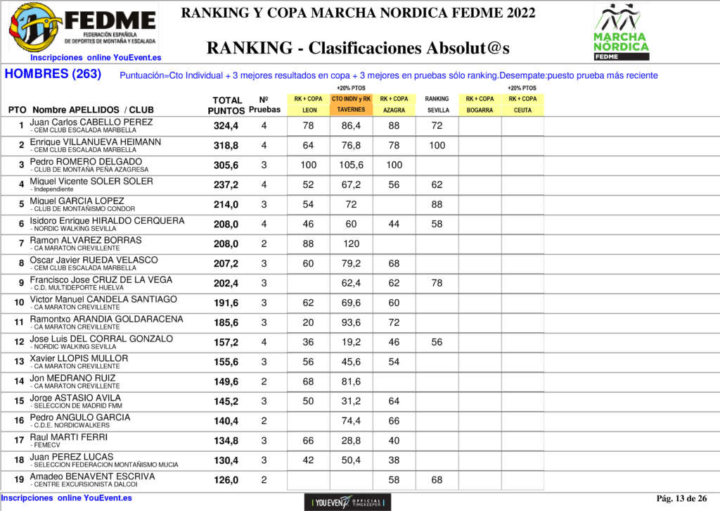 CLASIFICACIÓN GENERAL COPA DE ESPAÑA IBERDROLA DE MARCHA NÓRDICA