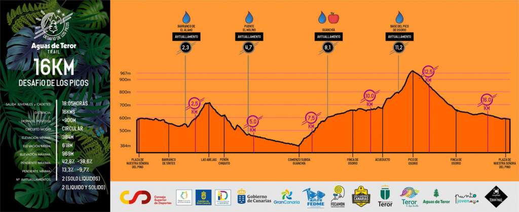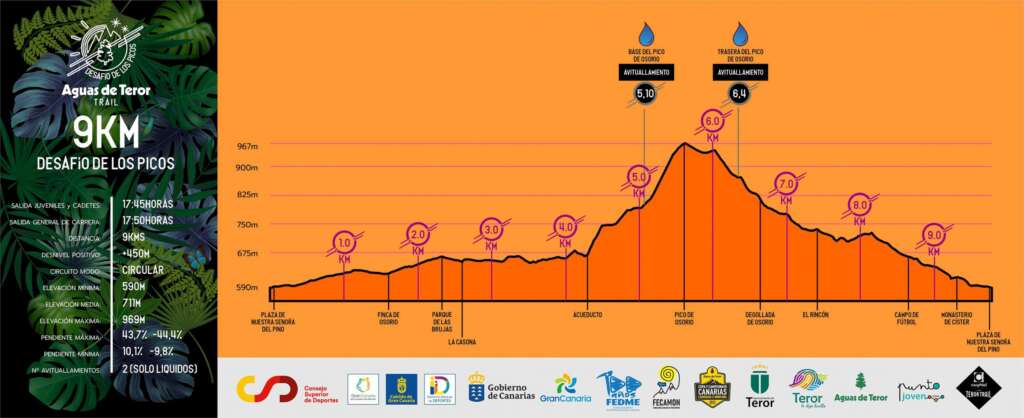 La Sección de Deportes por Montaña del Club Deportivo CFS Los Álamos – El Pino a través de su equipo de carreras, Carphial Teror Trail, junto a la Federación Española de Deportes de Montaña y Escalada, coorganiza, en conjunto con la Concejalía de Deportes del Ilustre Ayuntamiento de la Villa de Teror, la “XII AGUAS DE TEROR TRAIL-DESAFÍO DE LOS PICOS” que tendrá lugar durante la tarde noche del día 30 de julio del presente año, a lo largo de la orografía del citado municipio terorense, sito en la Isla de Gran Canaria. Una prueba que cuenta, además con la colaboración de los Clubes Deportivos Halteror y Bike-Therore.