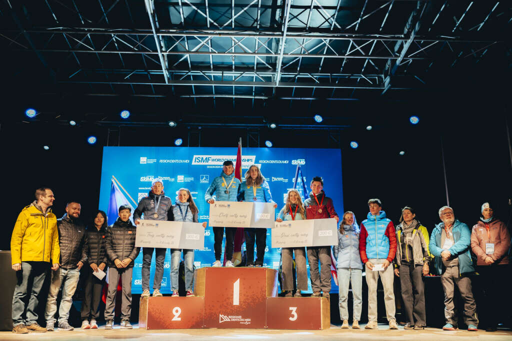 Tras un final de carrera intenso, los nuestros jóvenes esquiadores de la selección española de Esquí de Montaña, Laia Selles y Gonzalo Casares, se alzaban a lo más alto del podio después de superar a la pareja china, que recibía una penalización que los hizo situaría en la cuarta posición.