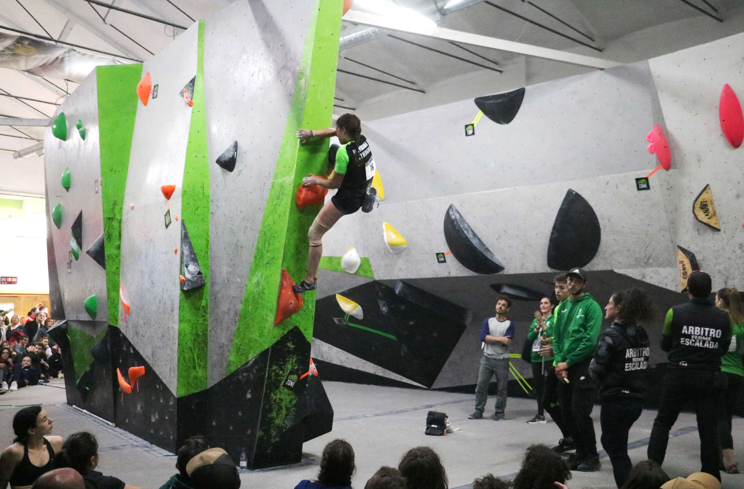 La competición arrancaba a primera hora de la mañana del sábado 22 de abril. Una prueba que se dividía en dos sesiones. La primera clasificatoria daba comienzo a las nueve de la mañana, abriendo unas series clasificatorias en las que 50 escaladoras lucharían por el acceso a las plazas de las finales. Unas finales que decidirían las medallas de este nacional universitario de escalada.