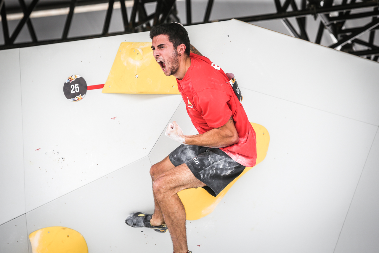 Alberto Ginés, llegaba a la segunda cita de las Series de Clasificación Olímpica, como segundo clasificado de la general y con muchas opciones de escribir su nombre en una de las doce plazas olímpicas en juego. La presión no pudo el escalador español, que a pesar de un mal arranque en la ronda de Bloque, con dos primeros problemas sin resolver, supo reponerse a partir del tercer bloque para finalizar la fase de Bloque entre los favoritos a la plaza olímpica.